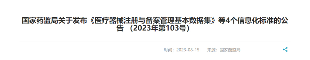 國家藥監(jiān)局關(guān)于發(fā)布《醫(yī)療器械注冊與備案管理基本數(shù)據(jù)集》等4個信息化標(biāo)準(zhǔn)的公告..